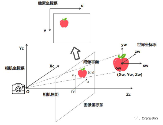 在計(jì)算機(jī)視覺(jué)中有四大坐標(biāo)系,分別是世界坐標(biāo)系、相機(jī)坐標(biāo)系、圖像坐標(biāo)系和像素坐標(biāo)系。這些坐標(biāo)系間的轉(zhuǎn)換對(duì)視覺(jué)系統(tǒng)的定位有著舉足輕重的作用。