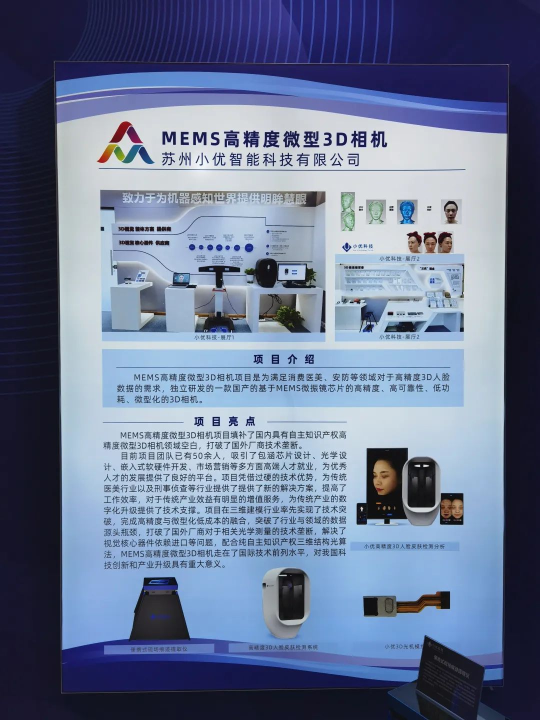 小優(yōu)智能科技攜自主研發(fā)的MEMS振鏡芯片、3D光機(jī)模組、MEMS高精度微型3D相機(jī)、高精度3D人臉檢測系統(tǒng)、便攜式現(xiàn)場痕跡提取儀等產(chǎn)品參展。并在展會(huì)活動(dòng)現(xiàn)場向各級(jí)領(lǐng)導(dǎo)、來展人員詳細(xì)介紹了公司發(fā)展歷程、最新研發(fā)的高精度3D相機(jī)產(chǎn)品優(yōu)勢,并進(jìn)行了高精度3D人臉檢測效果演示。